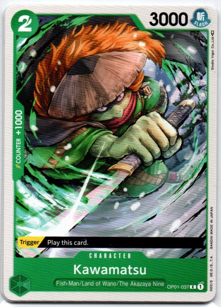 The Kawamatsu OP01-037 Set is the perfect way to make some waves! Get ready to set sail with the One Piece trading card game and Romance Dawn set. Live your One Piece dreams with the Kawamatsu!